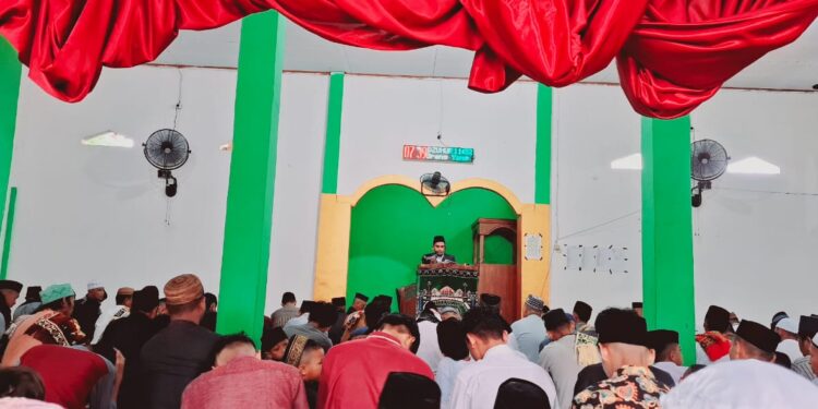 Dialektik News-Dalam rangka merayakan Idul Fitri 1 Syawal 1446 H, Sangadi Meyambanga Timur Umar Laganawa didaulat sebagai khatib dalam shalat Idul Fitri di Masjid Al-Qamar Desa Meyambanga Timur, pada Senin (31/03/25).