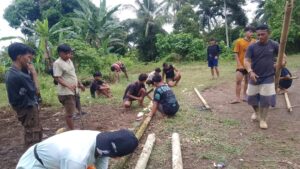 Foto: para pemuda sedang melakukan persiapan untuk perayaan Milad Desa Meyambanga Timur.